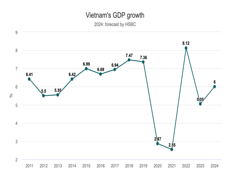 Vietnam’s economic recovery is robust, with the potential for a 6% growth rate in the coming year, as projected by HSBC.